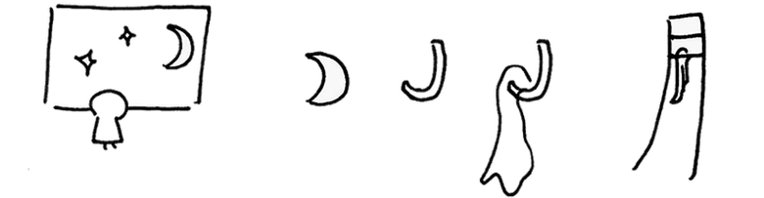 月亮常被用作抒发美好的遐想、思念之情。下班以后将自己的衣物挂在其上,如同将自己的思念挂在月上