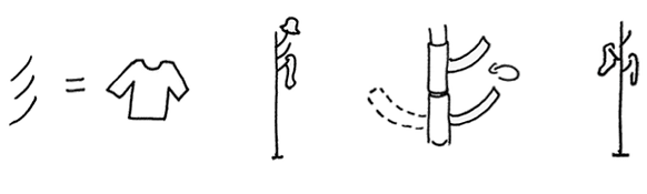原意为须毛和画饰的花纹,在汉语中与衣服同义,恰可作悬挂衣物之用。