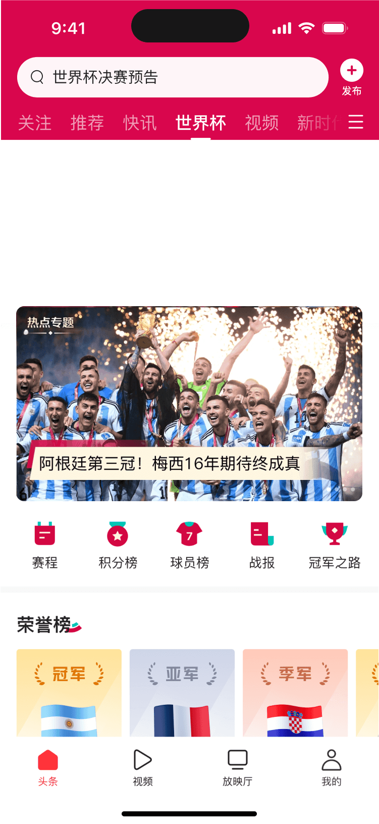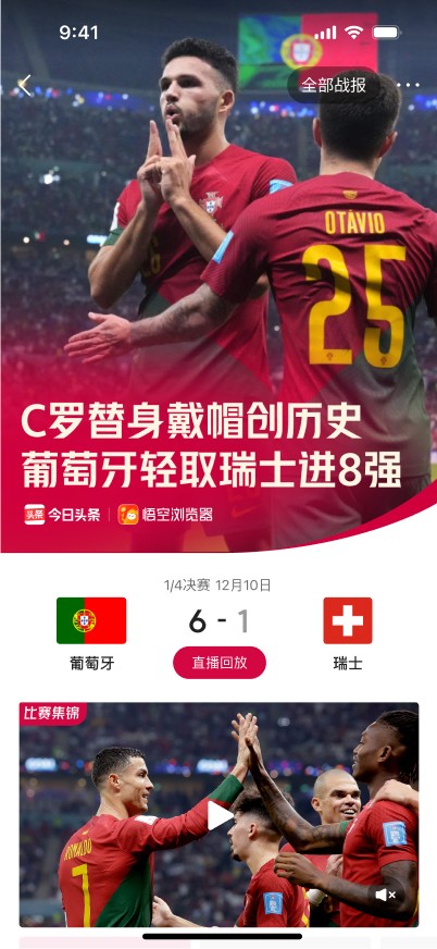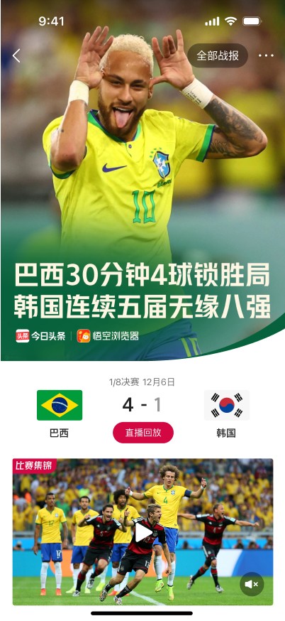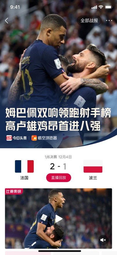 世界杯战报页头部:根据球衣颜色区分赛事,传递激烈赛事气氛